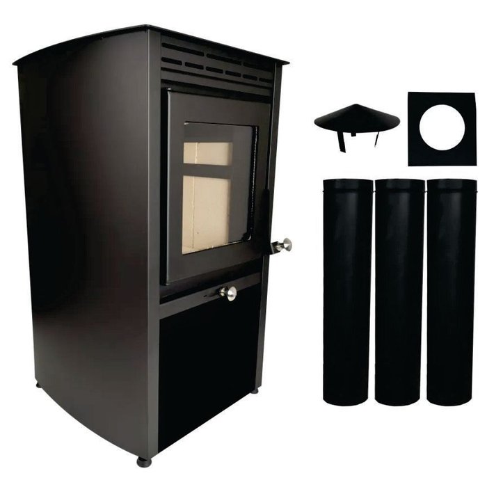 Fabricado em aço carbono de alta resistência, conta com dupla combustão, porta com vidro cerâmico, tijolos refratários em sua base, paredes e teto, com regulador de entrada de ar.