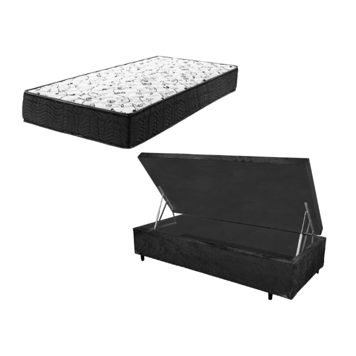 Cama Box Baú Solteiro Sonho Suede Preto + Colchão Solteiro Sonho Espuma D33 com Eps 14x88x188