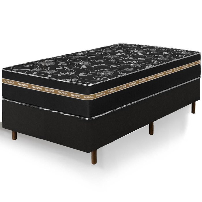 Cama Box Preta + Colchão Solteiro King Ortho Suport Ortopédico Espuma D33 Pillow Paparazzi Preta