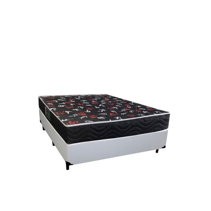 Cama Box Viúva Colchão Espuma D33 Oriental Preto Ducci + Box Sintético Branco (57x128x188)