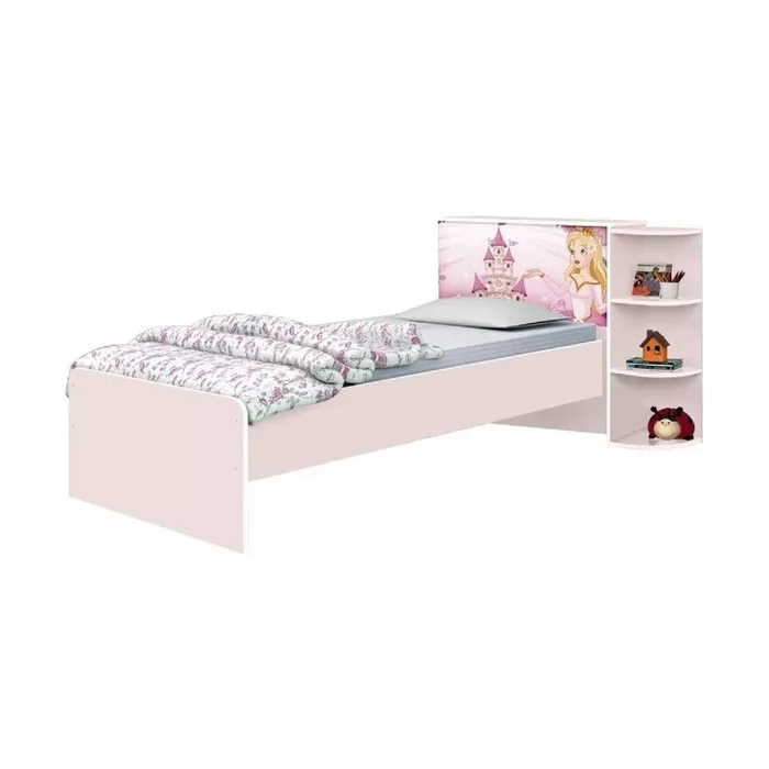 Cama de Solteiro Rosa para Menina com Cabeceira Baú Luxo Personagem Princesas Liz Rosa
