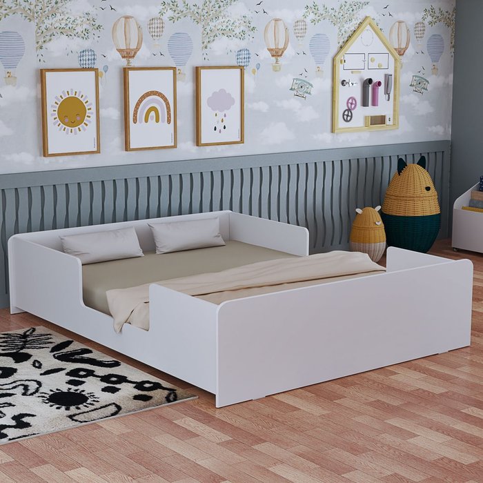 Cama Montessoriana para Criança com Colchão Incluso Mdf Resistente Padrão Casal Branca