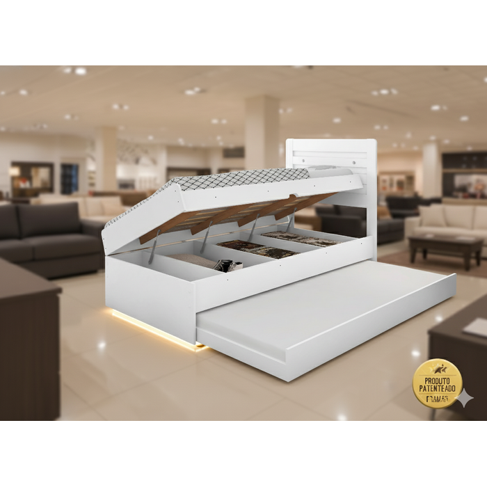 Cama Solteiro Baú com Auxiliar Larissa - Funcinal Prática - Branca
