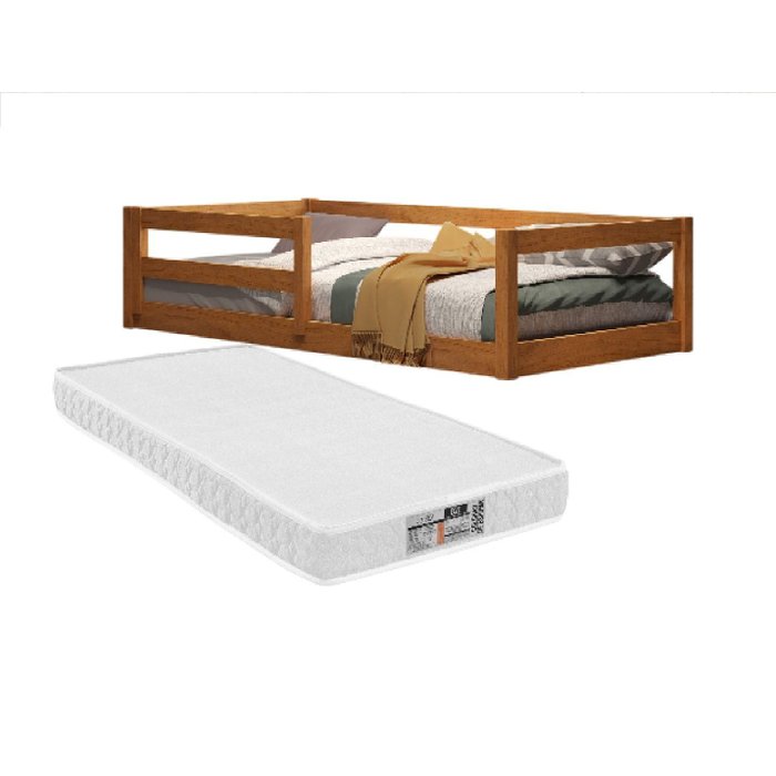 Cama Montessoriana Solteiro de Madeira Maciça Modelo Encanto com Colchão