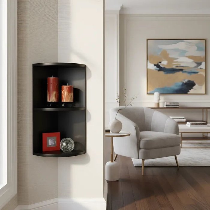 Cantoneira Nicho Prateleira de Canto Suspenso Multiuso Cozinha Preto Laca Preto