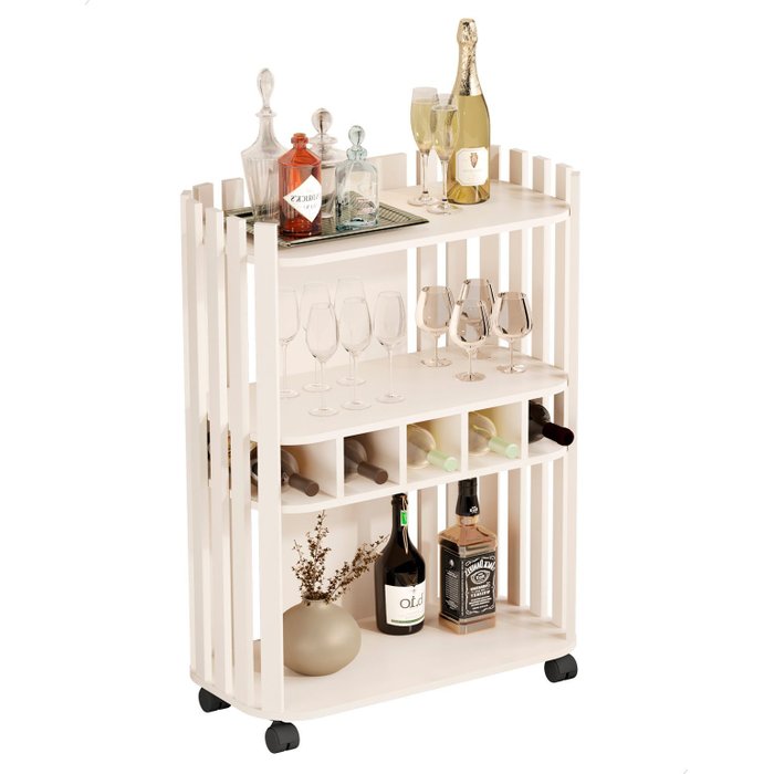 Carrinho C Adega Bebidas Barzinho Aparador Multiuso Vino Off Off-White