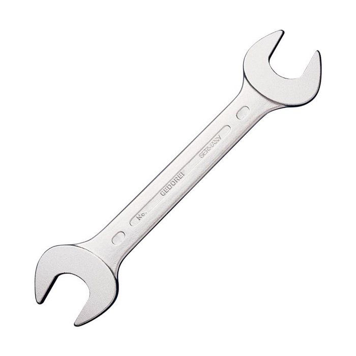 Fabricado em aço Gedore-Vanadium. Acabamento niquelado e cromado. Cabeças estreitas e com medidas diferentes em cada extremidade.