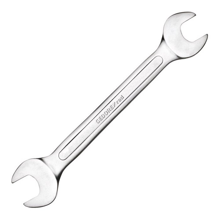 Fabricado em aço Gedore-Vanadium. Acabamento niquelado e cromado. Cabeças estreitas e com medidas diferentes em cada extremidade.