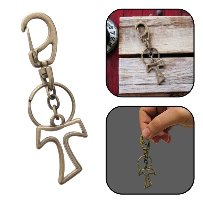 Chaveiro Tau Franciscano em Metal Dourado Dourado