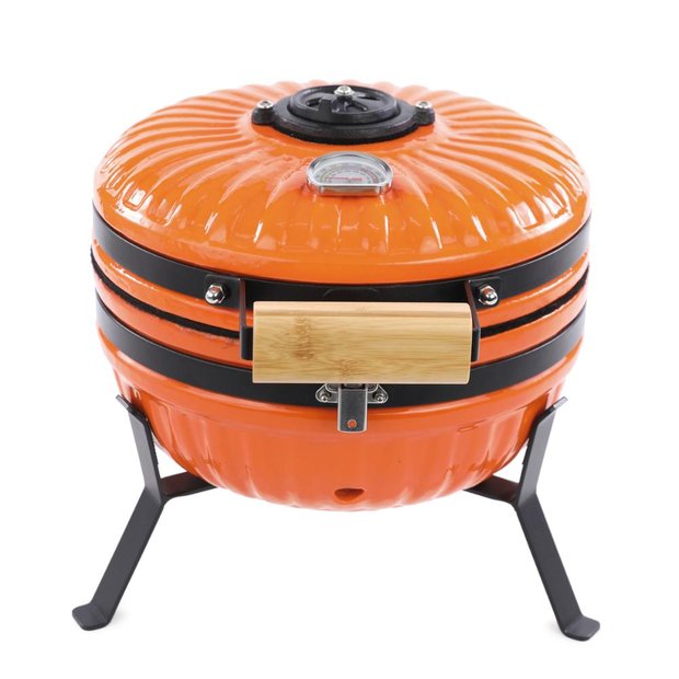 Fabricada em ferro fundido esmaltado com revestimento cerâmico e acabamento em aço inox, é um tipo de churrasqueira que serve para cozinhar de diversas formas. Cozinhando com carvão ou lenha, é versátil para preparar diversos tipos de alimentos, desde carnes e pizzas até pizza e pães. É ideal para defumar de forma lenta e perfeita. A distribuição uniforme de calor e controle de temperatura permite um cozimento homogêneo e mantém a temperatura estável por longos períodos. Com 30cm de altura e pesando aproximadamente 10kg, é uma ótima opção para quem busca uma churrasqueira de alta qualidade e facilidade de deslocamento. Pode ser usada em qualquer espaço, como barcos, camping ou em pequenos espaços gourmets. Foi projetada para ser robusta e durável. Além disso, é uma linda peça, que participa da decoração desses lugares especiais. Detalhe do Produto Material: Ferro fundido; aço inox Dimensões Altura: 30cm Largura: 31cm Comprimento: 45cm