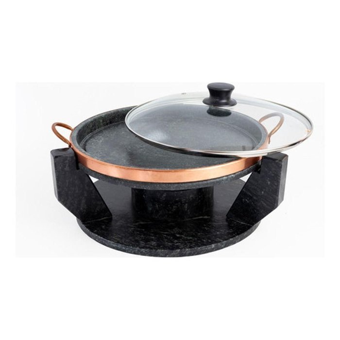 Churrasqueira Pedra Sabão Média 26 Cm com Tampa de Vidro