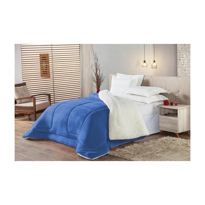 Coberdrom Edredom Sherpa Solteiro Pele De Carneiro Azul