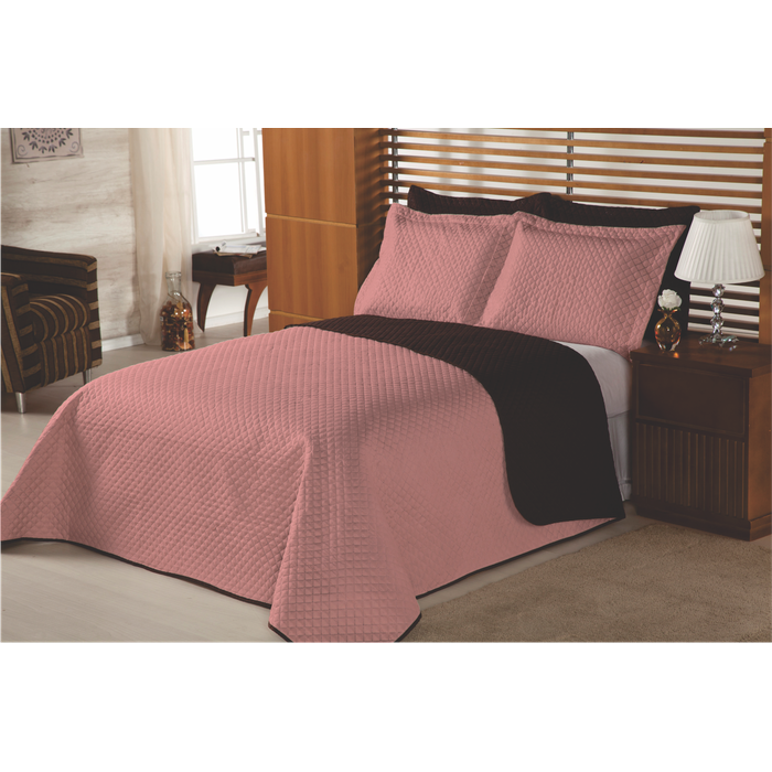 Cobre Leito Queen Dupla Face 3 Pçs Florença:rosa Velho