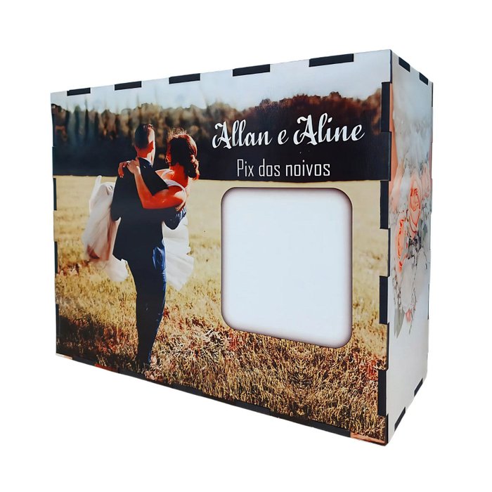 Com o Cofre Pix dos Noivos, você pode deixar seus convidados contribuírem para a sua lua de mel de forma simples e sem complicação, basta imprimir o qrcode desejado em papel adesivo e colar no espaço indicado no cofre. O design do cofre foi cuidadosamente pensado para se integrar perfeitamente à decoração do seu casamento. Com detalhes elegantes, ele se encaixa de maneira sofisticada na mesa de presentes, substituindo o tradicional sapatinho e gravata. A praticidade e a modernidade do QR code, somada à beleza e ao simbolismo do cofre, tornam este item indispensável para o seu grande dia