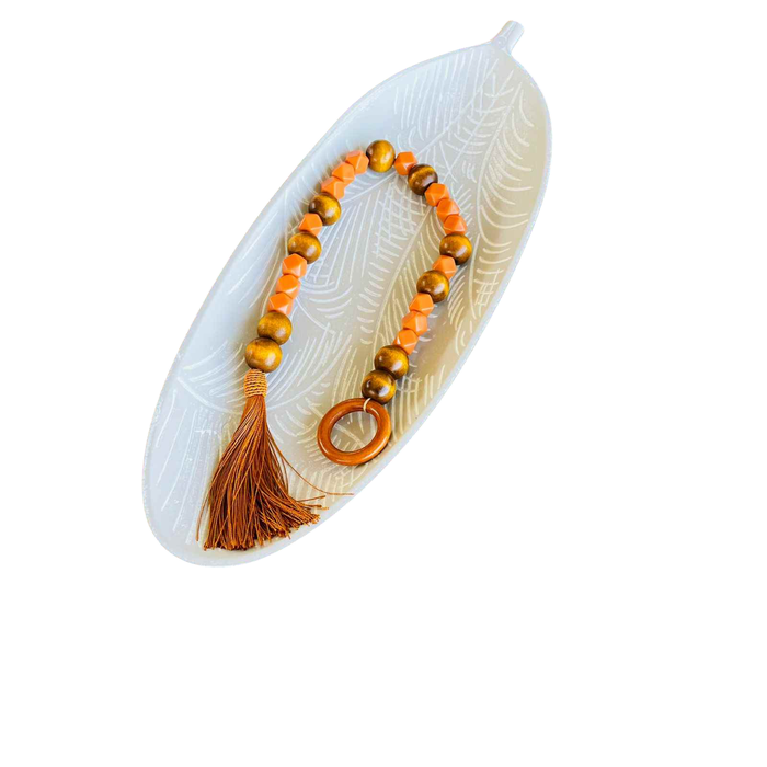 Esse colar decorativo grande é perfeito para compor bandejas, mesas de centro, aparadores, prateleiras e até cestos. Feito com contas de madeira artesanalmente polidas e cordão de qualidade, ele traz um visual moderno com inspiração natural e boho chic.