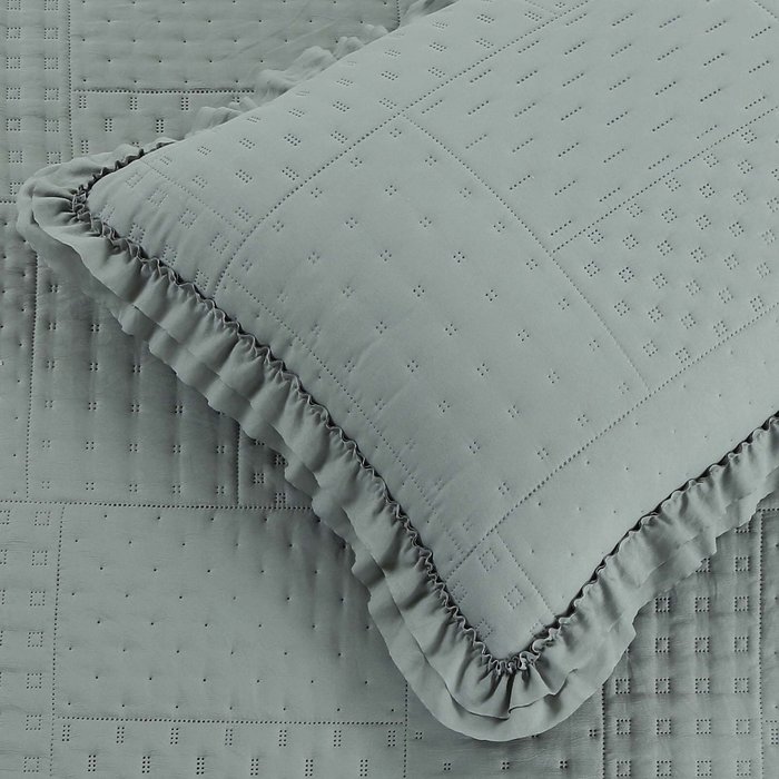 Colcha Babado Queen Fluffy 3pçs Cinza