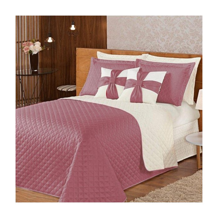 Colcha com Cobre Leito Essencial Dupla Face Casal Queen 7 Peças Rosê Moda Casa Dona