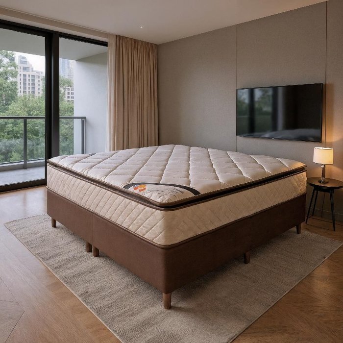 Colchão King Molas Ensacadas Fiori com Box 193x203x55 Bom PastorO Colchão King Molas Ensacadas Fiori 193x203x67 cm com Box da Bom Pastor é sinônimo de conforto elevado e qualidade superior. Com molas ensacadas individualmente, proporciona suporte ao corpo e elimina a transferência de movimentos, ideal para um sono ininterrupto. A espuma D33 selada oferece firmeza e durabilidade, enquanto o Super Pillow Top adiciona uma camada extra de maciez e aconchego. Acompanha box em madeira 100% reflorestada, unindo sustentabilidade e resistência. Produto direto da fábrica, com acabamento premium e alto padrão de conforto.Especificações:• Tecido em malha construída com multifilamentos de poliéster o que proporciona uma malha resistente e com toque macio aumentando a durabilidade do seu colchão.