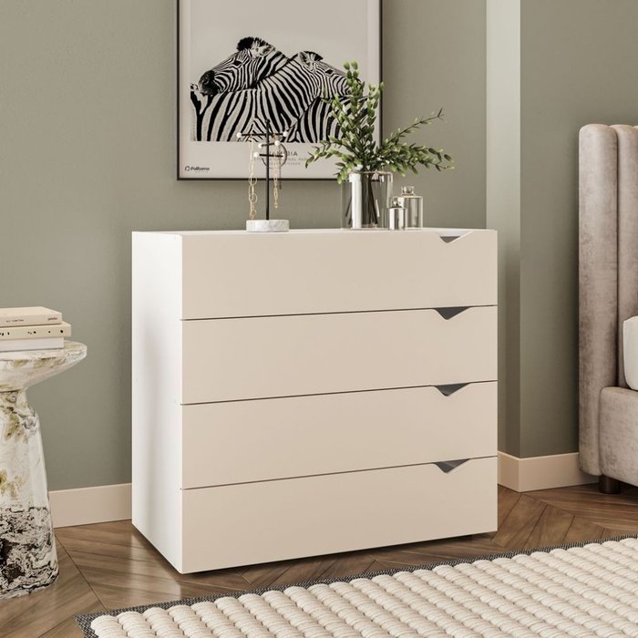 Cômoda 4 Gavetas Branca e Creme Porto Politorno
