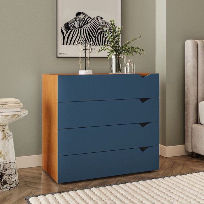 Cômoda 4 Gavetas Porto Freijó Azul Politorno Móveis