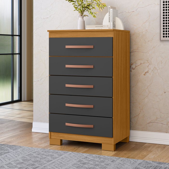 Cômoda 5 Gavetas Itapema Carvalho Americano/Grafite