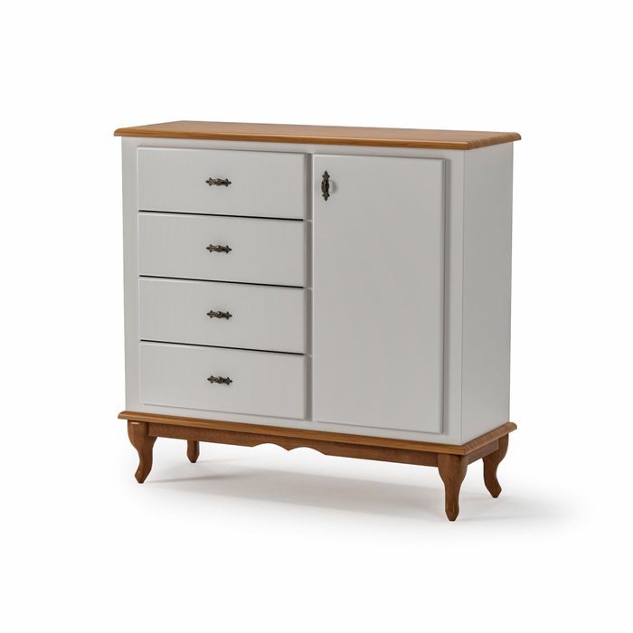 Cômoda com 4 Gavetas e 1 Porta Clássica Pés Luiz Xv Offwhite - Imbuia
