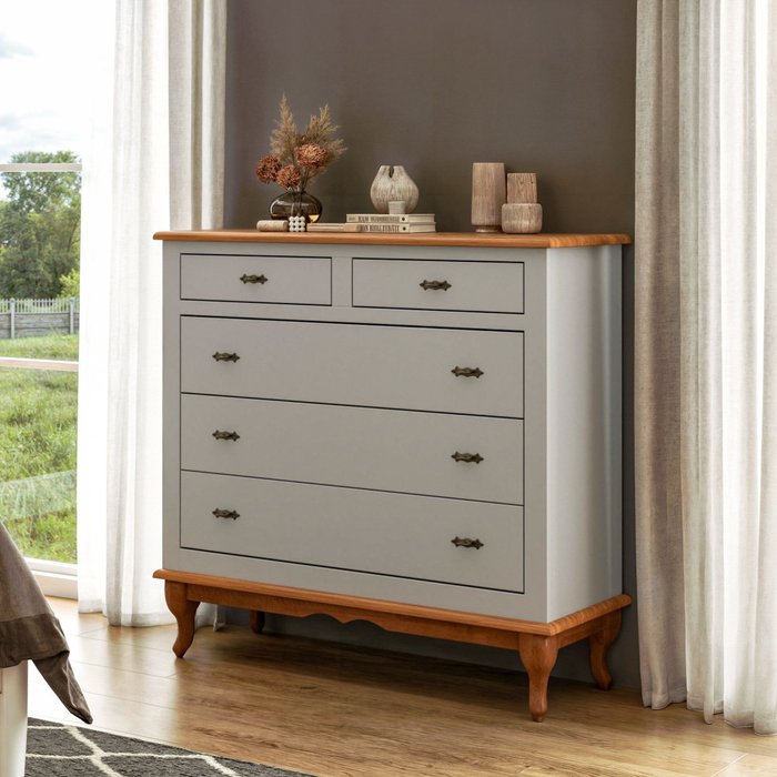Cômoda com 5 Gavetas Clássica Pés Luis Vx Cinza - Imbuia