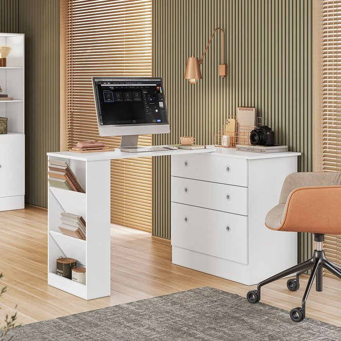 Cômoda com Mesa Giratória Gamer Branco Qmovi