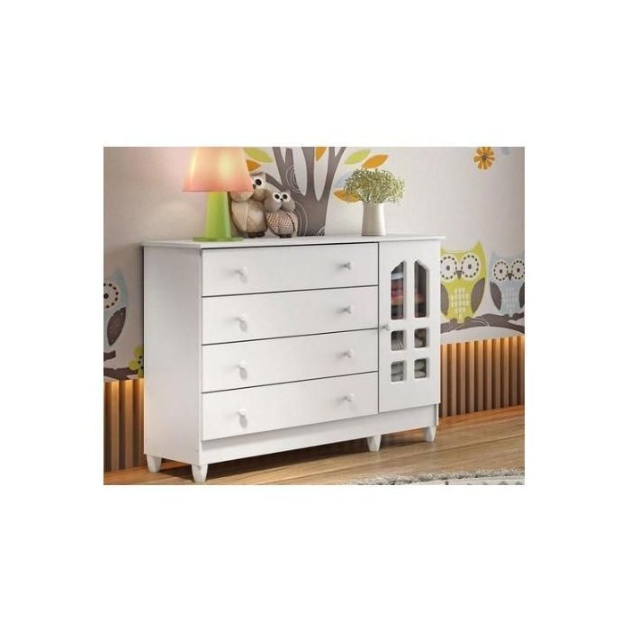 A Cômoda Fraldário Grand Selena traz um design moderno além de ser funcional, irá complementar o quarto do seu filho. - Cômoda fabricadas em MDF e MDP de alta resistência mecânica. - Gavetas com movimentos de abrir e fechar sobre trilhos metálicos com sistema de trava de segurança - Pintura em acabamento por camadas de verniz foto-curado (UV) de composição não tóxica - Embalagem em caixas de papelão, com mantas internas de proteção entre peças e revestidas por cobertura de plástico termo-encolhível. - Produto equipado com 4 pares de corrediça telescópica. - Sistema anti-tombamento - Design Neutro, ótimo para quartos de recém-nascidos INFORMAÇÕES TÉCNICAS - Cor: Branco Brilho - Linha: Grand Selena - Matéria-prima: MDF/MDP - Tipo de Pintura: UV - Quantidade de Portas: 1 - Quantidade de Gavetas 4 - Quantidade de Prateleiras: 1 - Quantidade de Pés: 4 - Material dos Pés: PVC Rígido - Necessita montagem: sim - Corrediça: Telescópica - Travas antitombamento: Sim - Altura (cm): 92 - Largura (cm): 41 - Comprimento (cm): 130 - Garantia: 3 meses