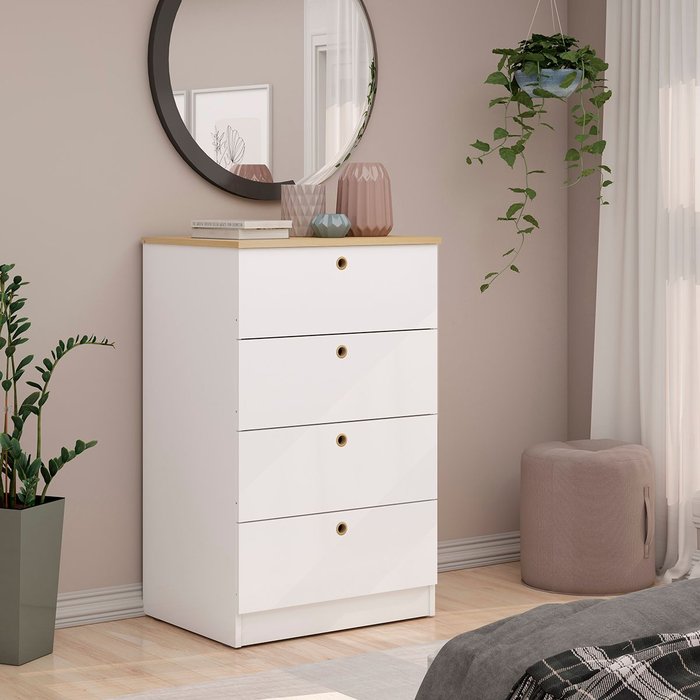 Cômoda Genialflex Branca 4 Gavetas Encaixe sem Ferramentas Branco/Savana