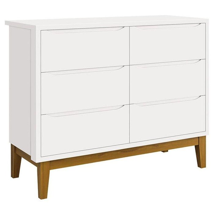 Cômoda Infantil 6 Gavetas Classic Branco Acetinado com Pés Madeira - Reller