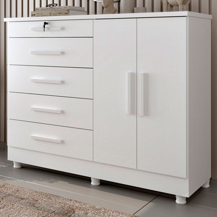 Cômoda Istambul 2 Portas 5 Gavetas Neve - Tcil Móveis