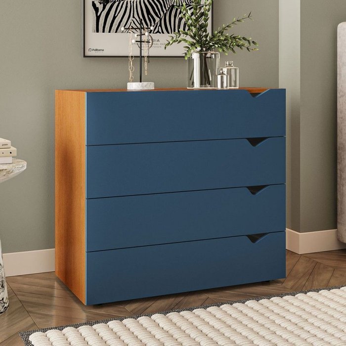 Cômoda Porto 4 Gavetas Freijó/azul - Politorno