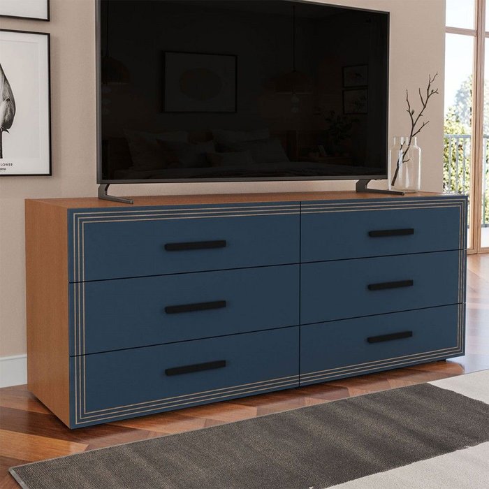 Cômoda Valência 6 Gavetas Freijó/azul - Politorno