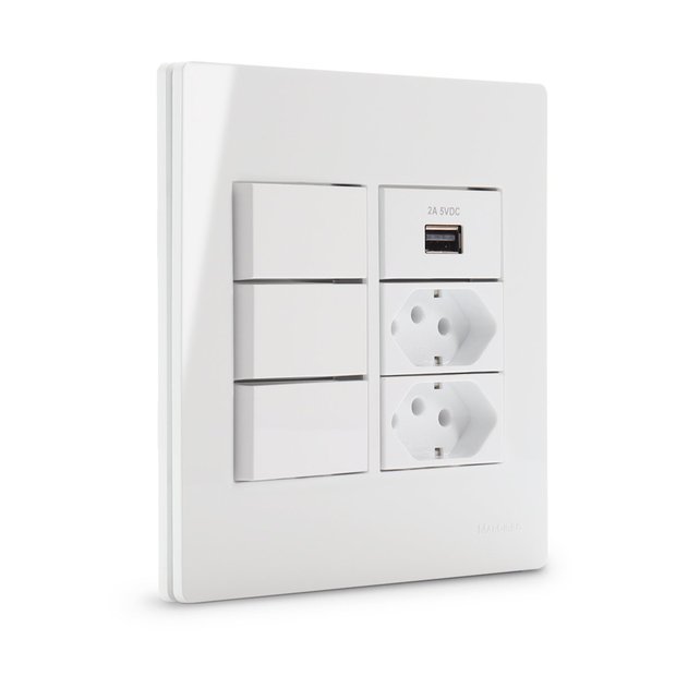 1 CONJUNTO PLACA 6 POSTOS COM MODULO 3 INT. SIMPLES + 1 USB 2A + 2 TOMADA 20A 4x4" INFINITI MARGIRIUSCom design diferenciado, acabamento em alto brilho, alta qualidade e fácil instalação, a linha Infiniti da MarGirius veio para atender às mais variadas necessidades do mercado, proporcionando um toque todo especial à sua casa ou empreendimento. Suas linhas retas e sofisticadas fazem o visual ser ainda mais moderno. Os módulos e placas são fabricados com materiais antí-UV, que evitam o amarelamento por muito mais tempo.INFORMAÇÕES IMPORTANTES:- 1 Conjunto 4x4", composto por 3 modulo simples, 1 USB 2A, 2 tomadas de 10A,1 placa e 1 suporte.- Todos os Interruptores e Tomadas 2P+T das linhas residenciais MarGirius são Certificados.- Medidas e peso:---> Com embalagem: Largura 14,5cm x Altura 20cm x Profundidade 4m x Peso 129g---> Sem embalagem: Largura 12,2cm x Altura 12cm x Profundidade 4cm x Peso 125,9gQUALIDADE:- A AKT Store trabalha com produtos de fabricantes reconhecidos em todo mercado brasileiro e internacional.- Você tem suporte para a utilização dos produtos diretamente do fabricante.- Vendemos produtos de alta qualidade para uso profissional.Clique no botão "Comprar agora" para garantir o seu produto.