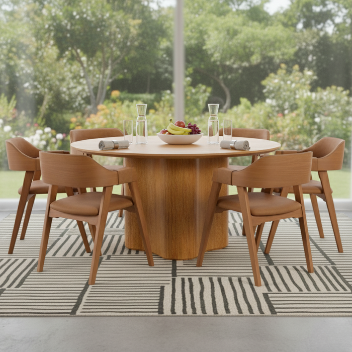 Sua base, em formato orgânico, é feita em laminado de madeira natural, proporcionando um design moderno e sofisticado, que se adapta a diferentes estilos de decoração. Com altura de 80 cm, a mesa é perfeita para ambientes modernos e aconchegantes, trazendo um toque de classe e requinte para sua sala de jantar.