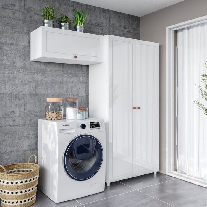 Conjunto 1 Armário 2 Portas Multiuso e 1 Armário Aéreo Basculante Pérola Yescasa Branco
