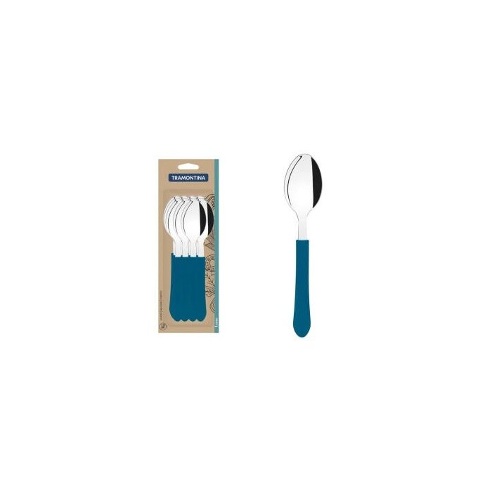 Conjunto 12 Colheres Leme Azul Tramontina Aço Inox Azul