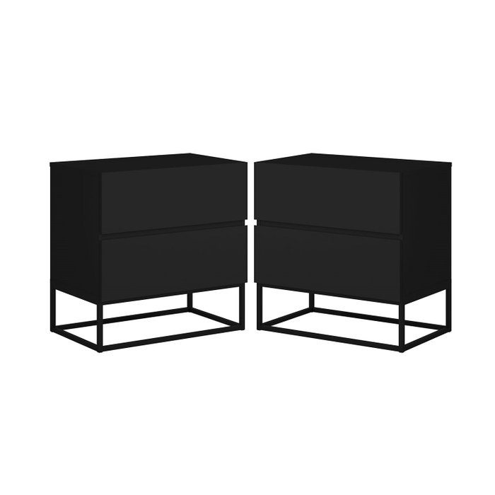 Conjunto 2 Mesa de Cabeceira Estilo Industrial 2 Gavetas Eros 45 Base Preta:preto Preto