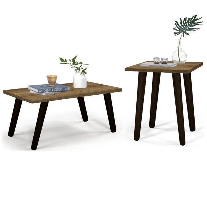 Conjunto 2 Mesas De Centro e Lateral - Sala de estar - Solanum - Pé Preto SOLANUM (MADEIRA RUSTICA)