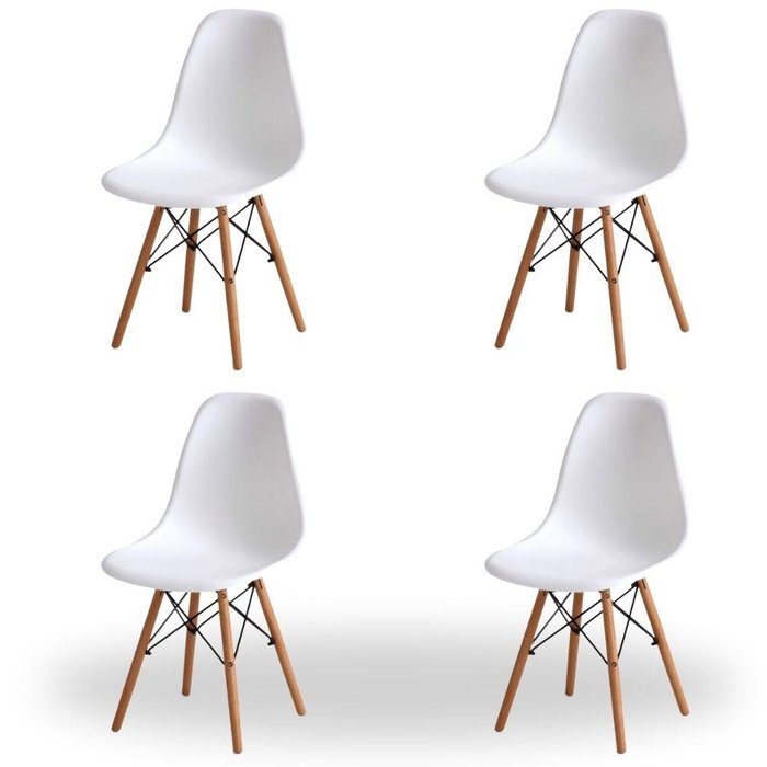 Conjunto 4 Cadeiras Eiffel Pés Madeira Maciça Urban Wood Elomio Branco Branco