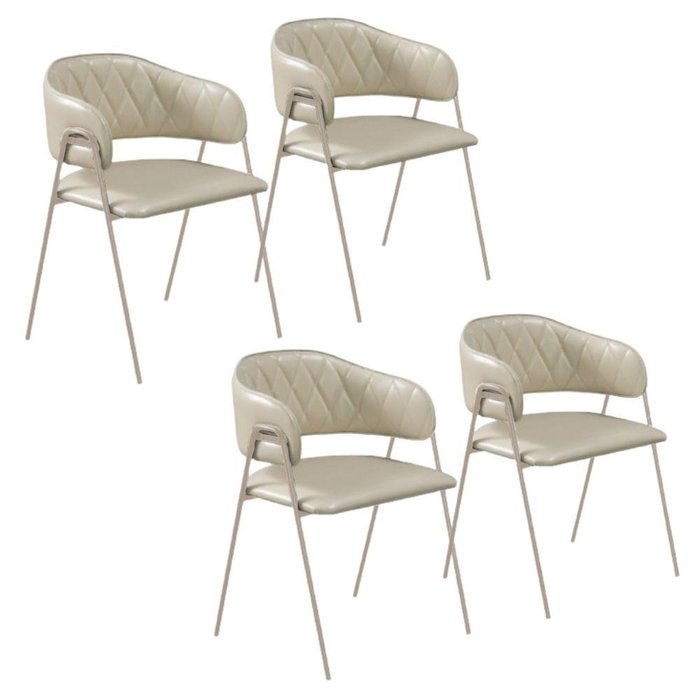 Conjunto 4 Cadeiras Veneza no Couro Pérola e Metal Champanhe Champanhe