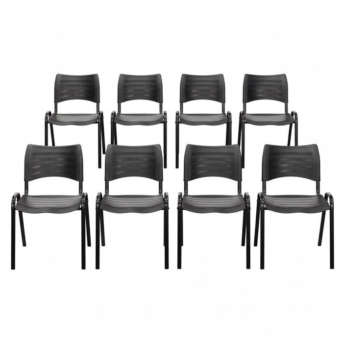 Conjunto 8 Cadeiras Empilháveis Iso Reforçada para Recepção Cor Preta - Combo Stock