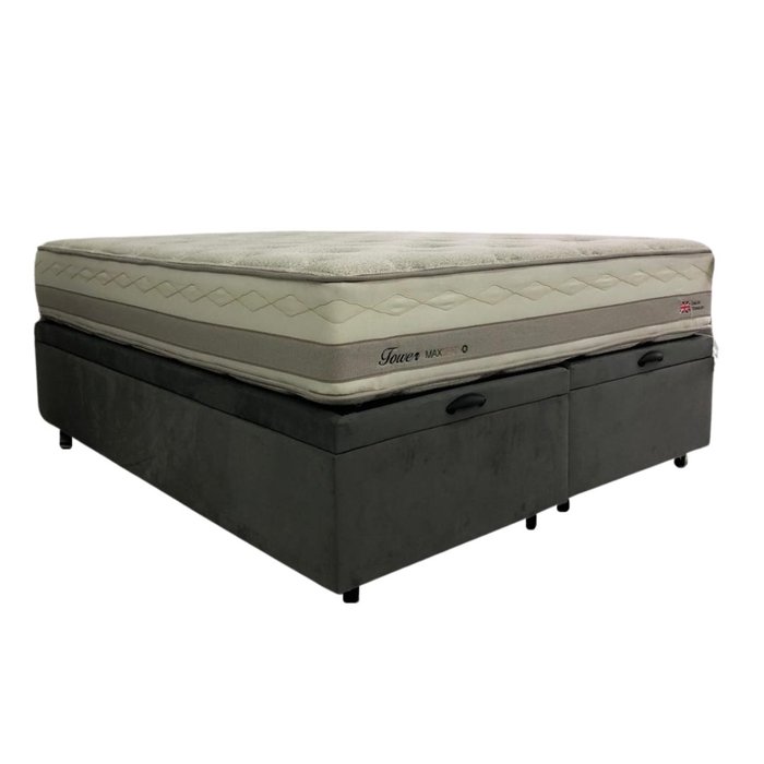 Conjunto Box Baú Bipartido Conceito + Colchão Meca Tower Queen 1,58x1,98 Dupla Face Herval Cinza - S