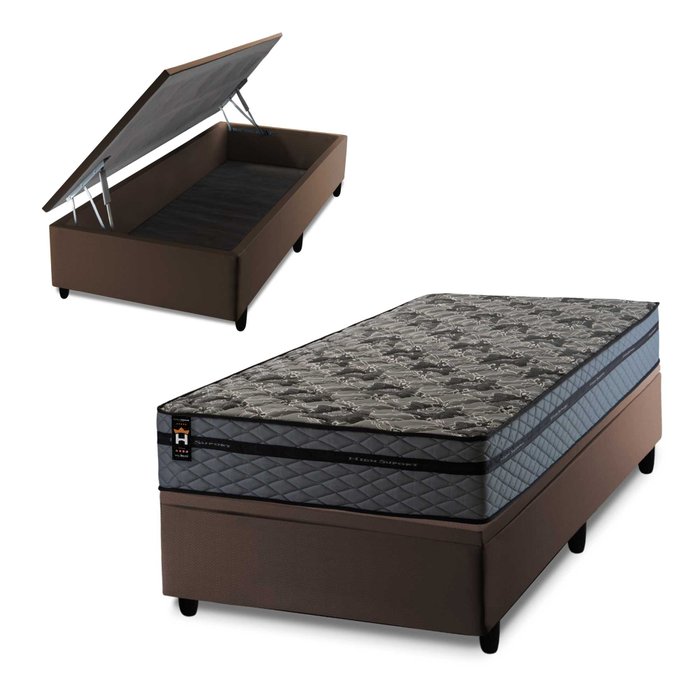 Conjunto Box Baú Solteirão Montreal Marrom 96x203x71 c/ Molas Ensacadas