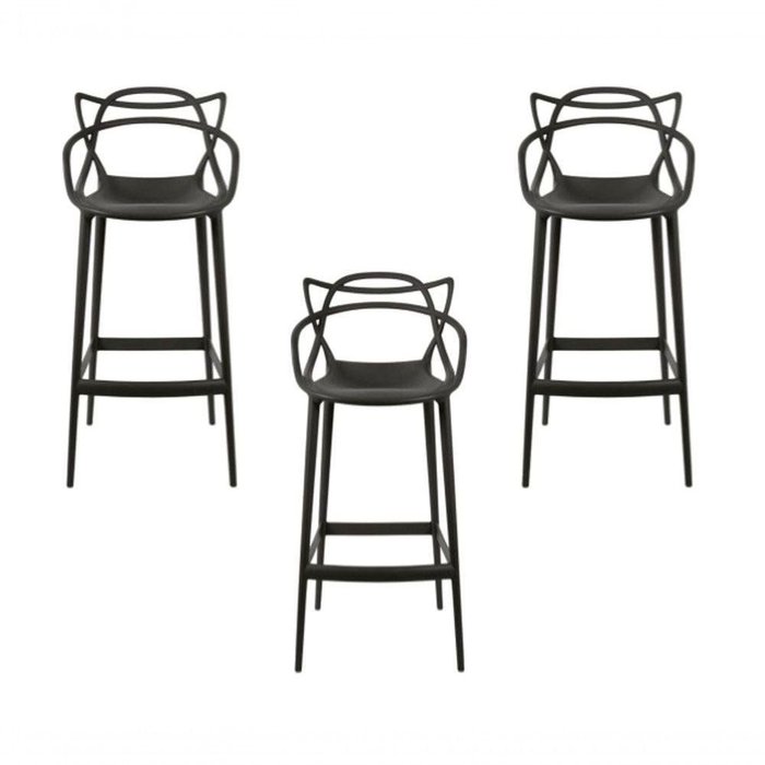 Conjunto C/3 Banqueta Allegra Alta Master Preta Cozinha Americana Balcão Polipropileno Preta
