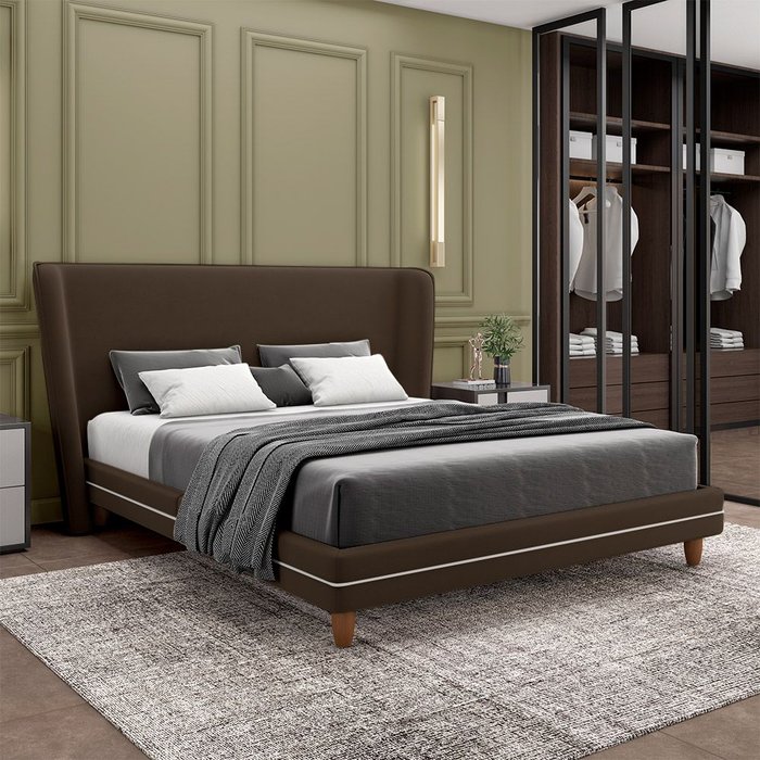 Conjunto Cama com Cabeceira Queen Torres Pés em Madeira Veludo Marrom G91 - Gran Belo