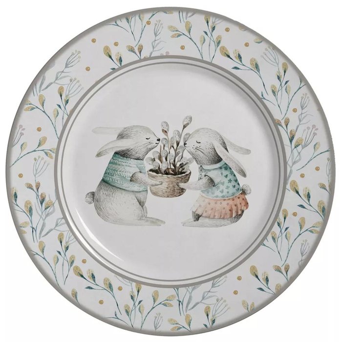 Conjunto com 6 Pratos Raso Coelho Pascoa Ø29cm Alleanza Cerâmica