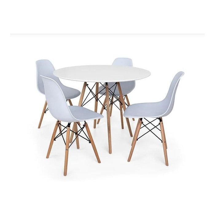 Conjunto de Mesa Eames Eiffel Redonda 120cm Branco + 4 Cadeiras Brancas branco