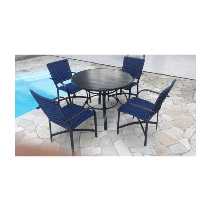 A qualidade de nossos produtos é garantida pela estrutura em alumínio revestido em corda náutica com tratamento UV. Para escolher uma das opções de tecidos e cores de corda, entre em contato conosco. Altura do assento 45cm Dimensões: Cadeira A90 x L57 x C60cm Mesa A76 x D100cm Por se tratar de confecção artesanal, as dimensões dos produtos podem sofrer variação. Corda Náutica: Para limpeza das cordas não utilizar produtos abrasivos, como álcool, solventes, nem palha de aço ou materiais semelhantes, não utilizar lavadora de pressão. Utilizar sabão neutro com uma esponja macia e pressão da água baixa, quando o móvel se encontrar em lugar fechado e úmido com pouca circulação de ar por exemplo: piscina aquecida ou sauna, deverá ser feita a limpeza mensalmente para evitar a proliferação de fungos e mofo. Alumínio ou inox polido: Para manter o brilho, utilize cera automotiva, tomando cuidado para não aplicar sobre as fibras e almofada. Aplicar no produto seco e limpo. Garantia Este móvel tem garantia de quatro (04) meses, se usado em condições normais, contra defeitos de fabricação. Essa garantia não cobre defeitos causados por uso inadequado ou abusivo, falta de cuidados, desbotamento natural dos tecidos ou riscos decorrentes do uso.